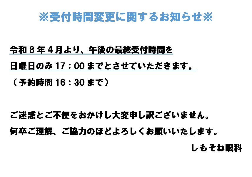 ■初めてのコンタクト装用希望の方、ソフトレンズ初めて装着、ハードレンズ初めて装着の方の受付時間は、受付終了時間の1時間前までとなります■