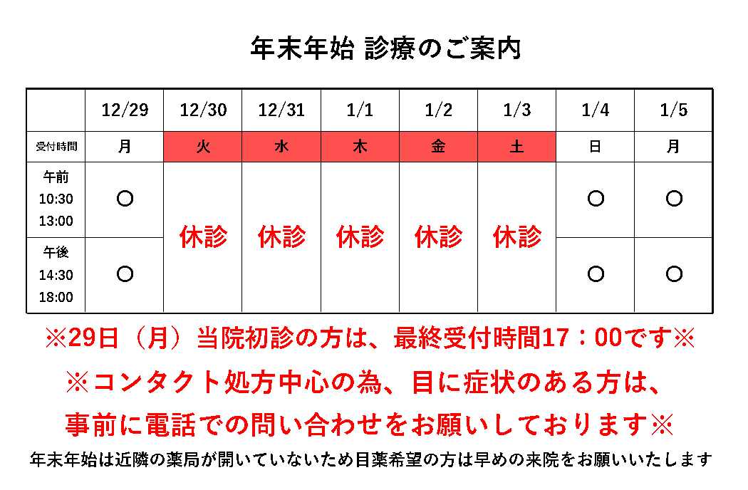 ■初めてのコンタクト装用希望の方、ソフトレンズ初めて装着、ハードレンズ初めて装着の方の受付時間は、受付終了時間の1時間前までとなります■
